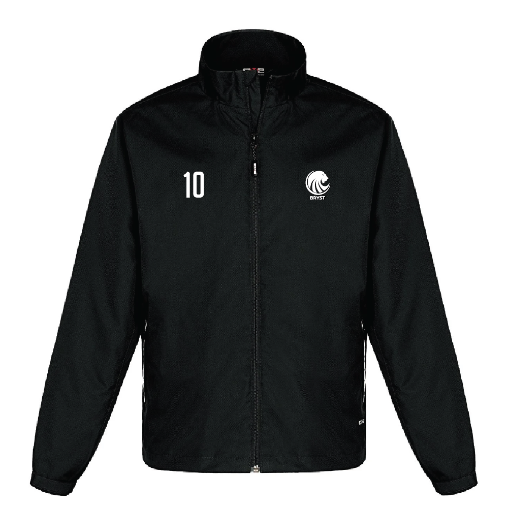 Triumph all-weather jacket with raised Bryst crest and player number. 100% Polyester Dobby Pongee with Wind & Water Resistant Finish. Mesh Lined body & Sleeves. Underarm Vents. Reflective Trim.